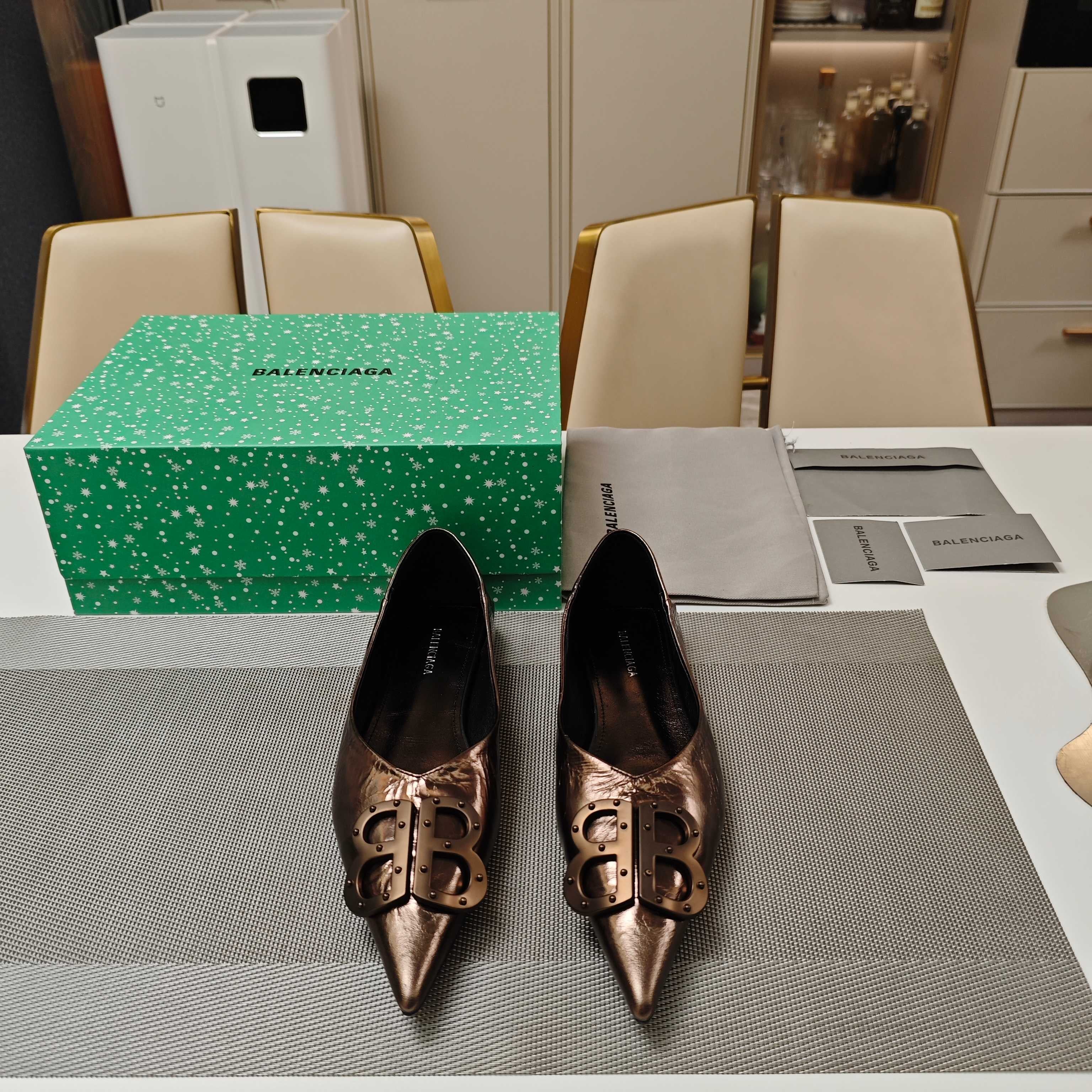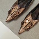 POINTED BALLET FLATS IN CHOCOLATE SHINY CRACKED SHEEPSKIN