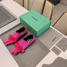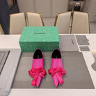POINTED-TOE FLATS WITH BOW IN HOT PINK SOFT LAMBSKIN