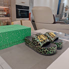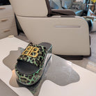 RISE SANDAL THICK-SOLED IN LIGHT GREEN LEOPARD PRINT CALFSKIN