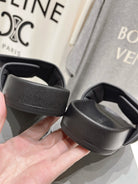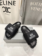 SLIDE SANDALS IN BLACK NYLON AND RUBBER WHITE PRINT