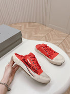 SNEAKER MULES IN RED CANVAS GRAFFITI LOGO