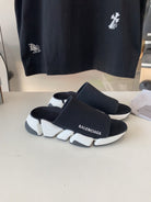 SPEED 2.0 SLIDE SANDAL IN BLACK RECYCLED KNIT AND WHITE SOLE