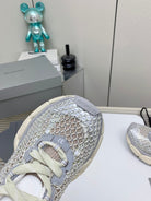 XL FISHNET SNEAKER IN GRAY AND BEIGE MESH, POLYURETHANE, POLYESTER WITH RHINESTONES