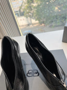 ZIPPER POINTED-TOE HIGH PUMPS IN BLACK WAX-OIL SHEEPSKIN