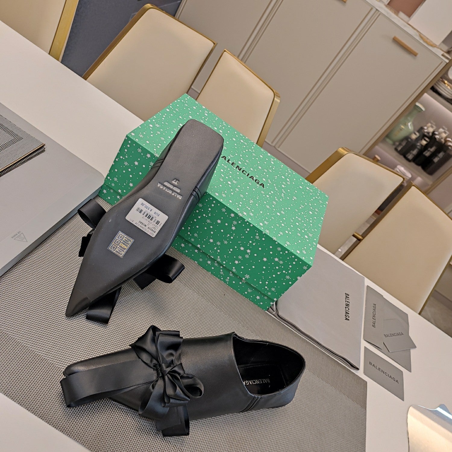 BOW-EMBELLISHED HIGH MULES IN BLACK SHEEPSKIN