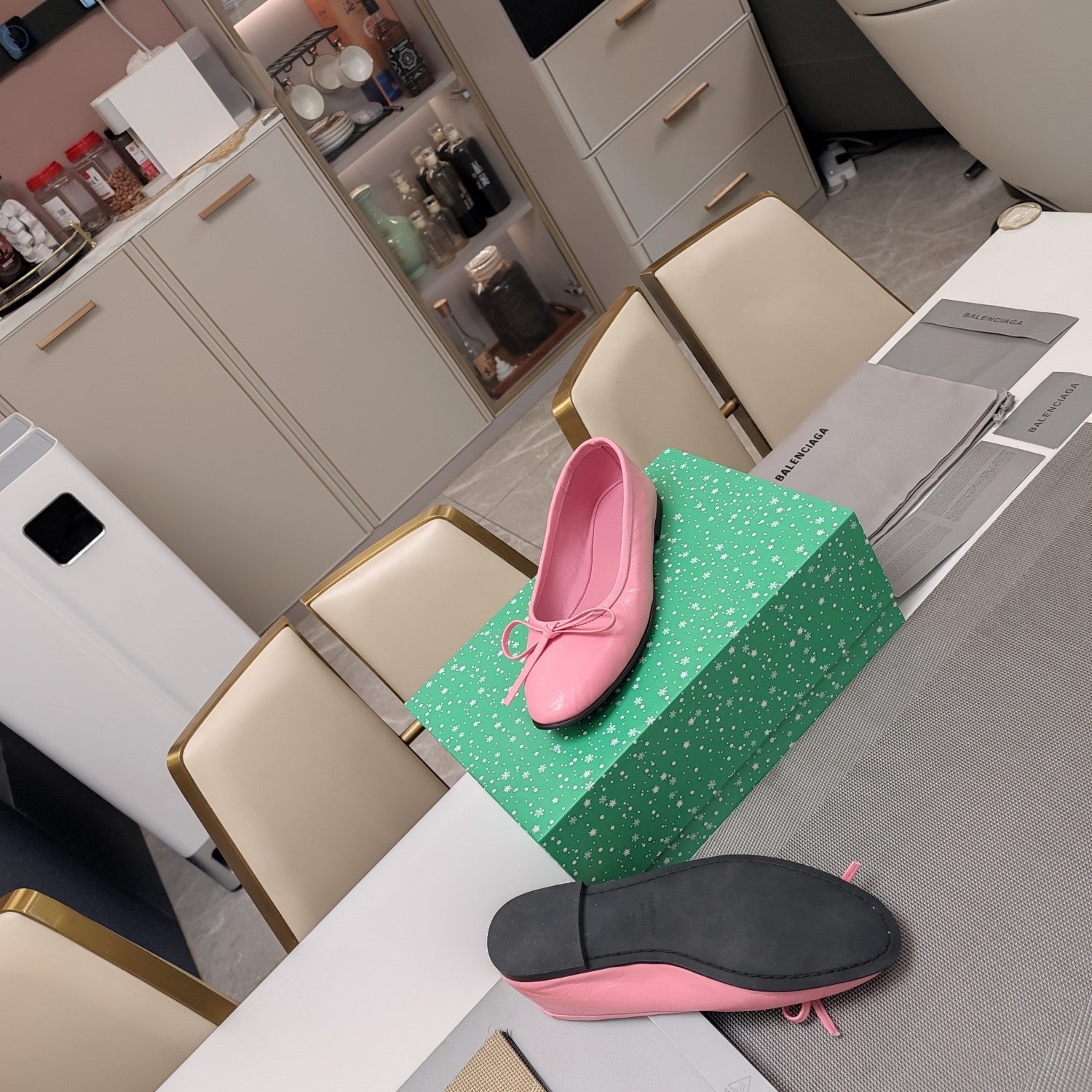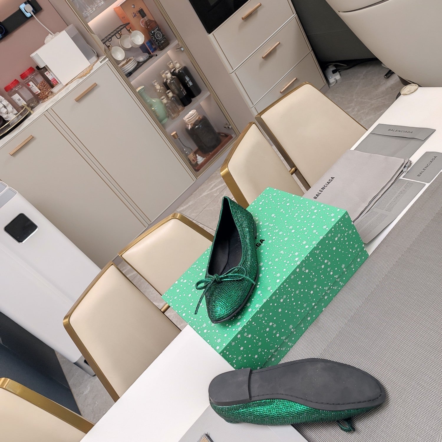 Balen 25 bow ballet flat attached rhinestones in green calfskin 184483