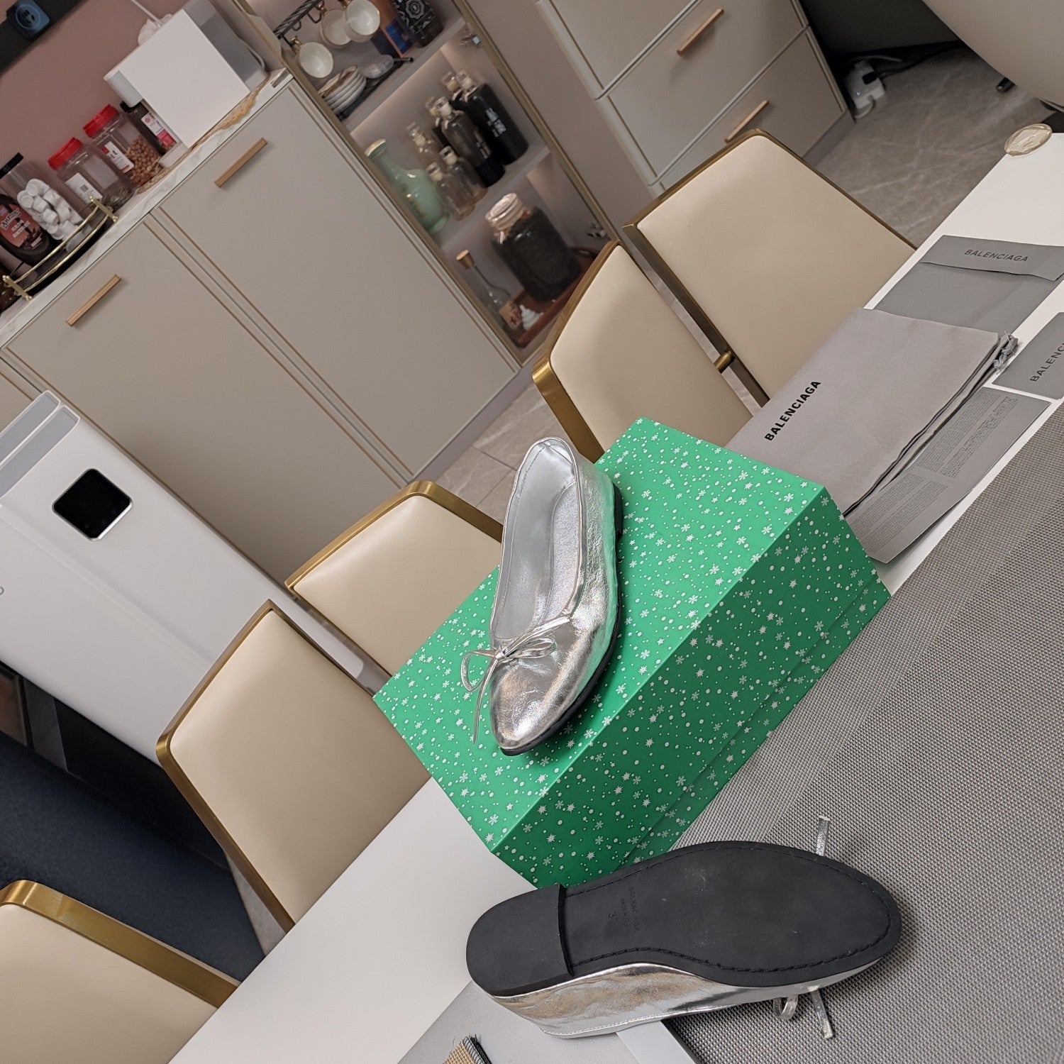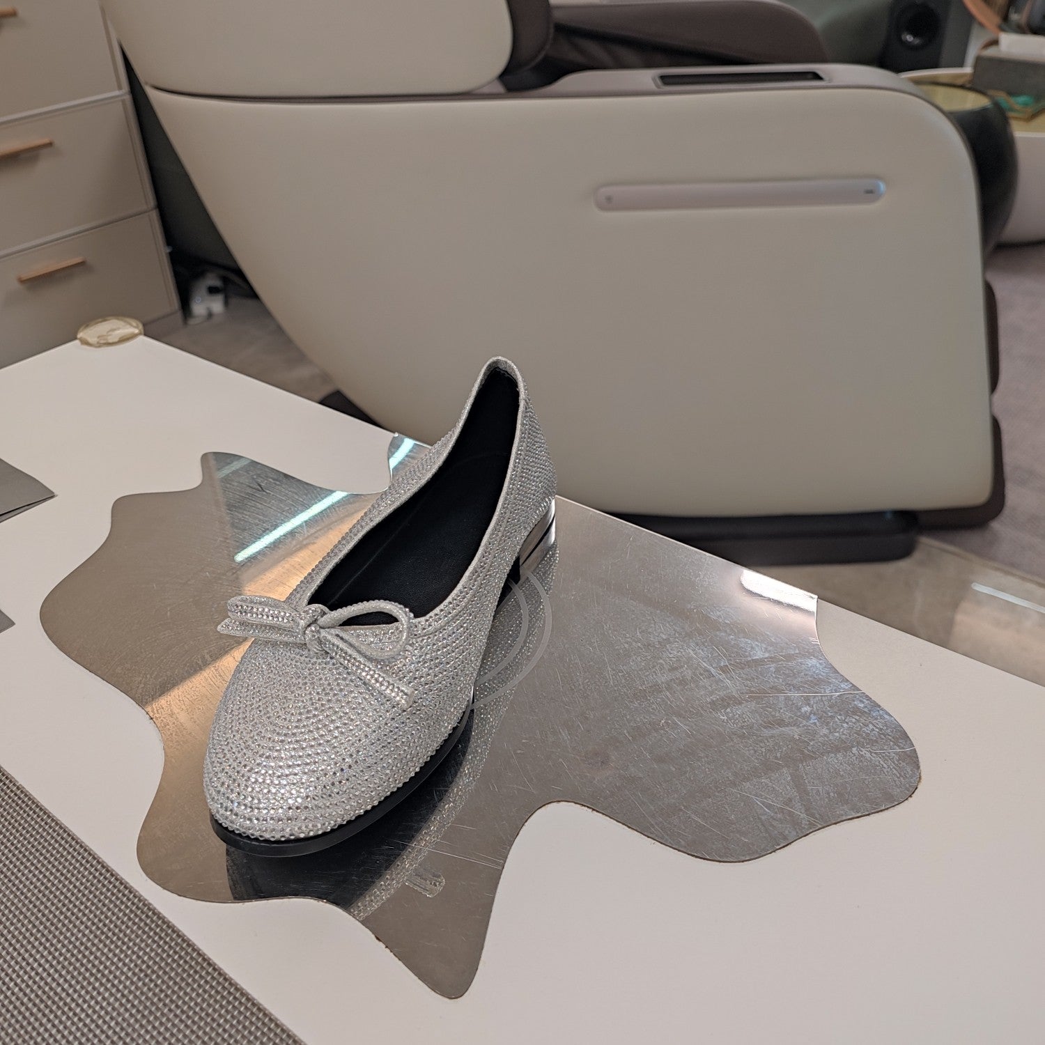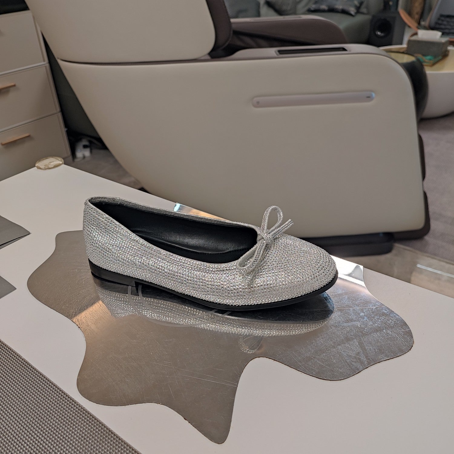 Balen 25 bow ballet flat attached rhinestones in silver metallic calfskin 184486