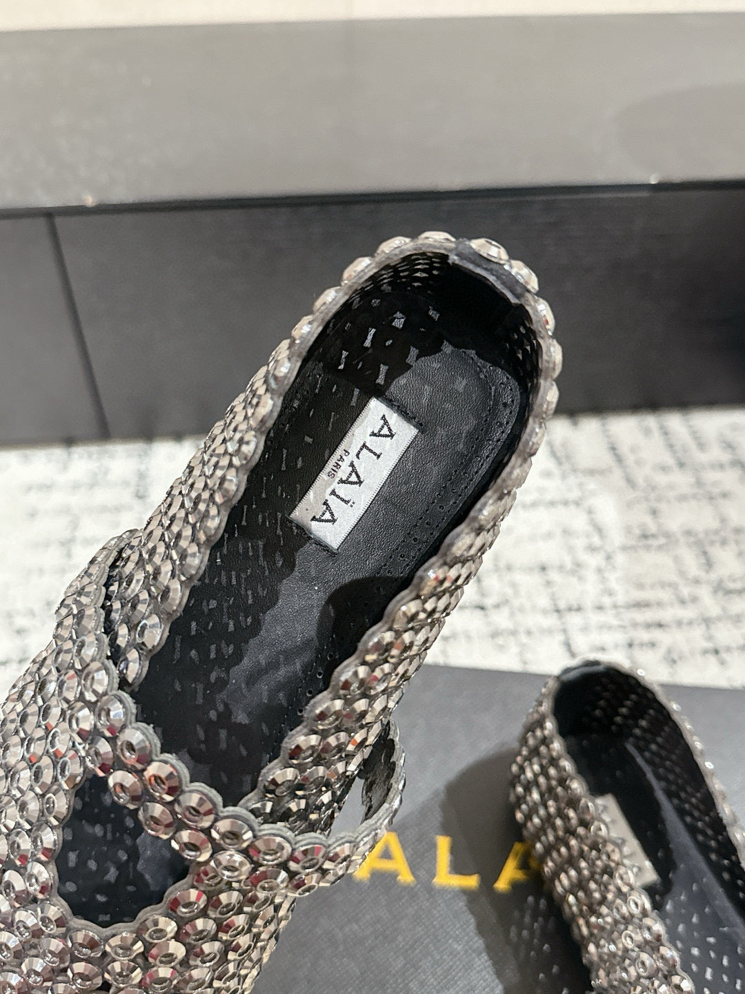 Alaia 25 Embellished Mary Jane Flats Silver Suede 293180