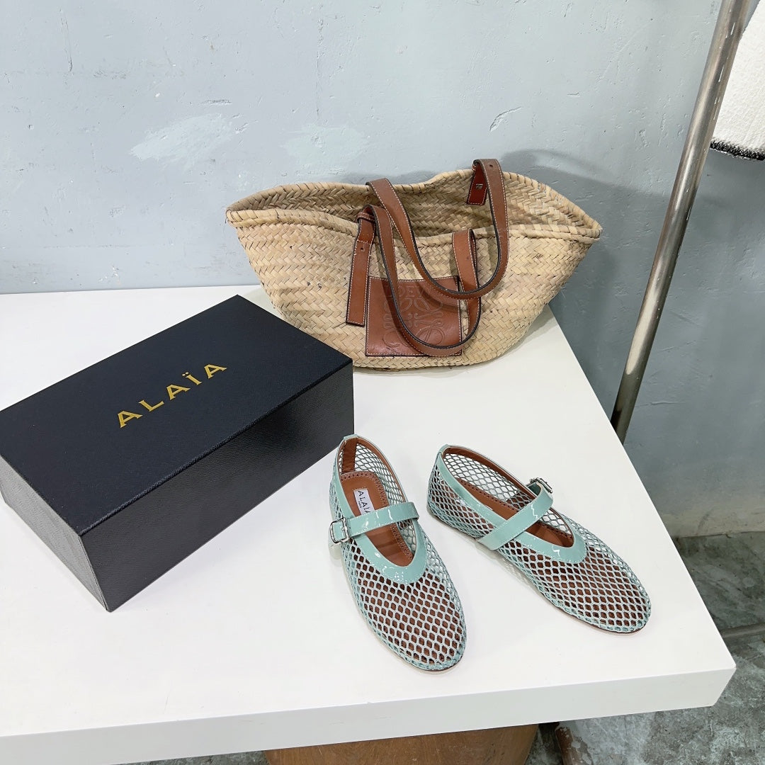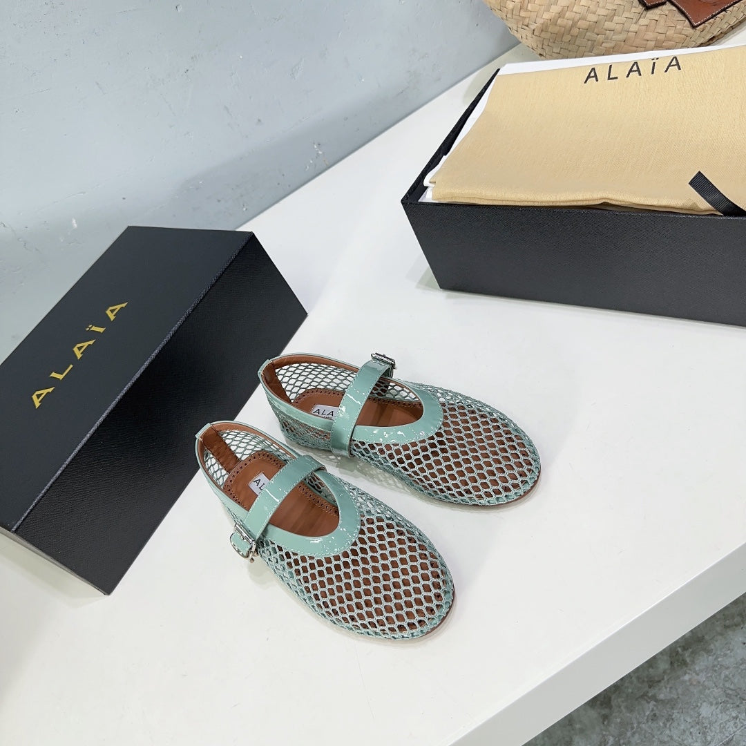 Alaia 25 Laminated Fishnet Ballet Flats Lagoon Green Lambskin 677172