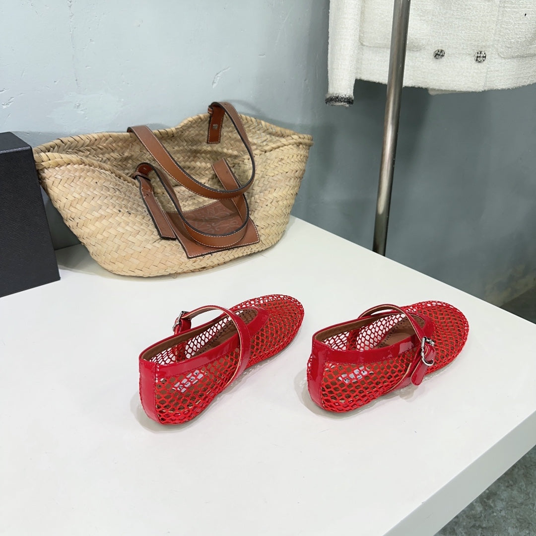 Alaia 25 Laminated Fishnet Ballet Flats Red Lambskin 576443
