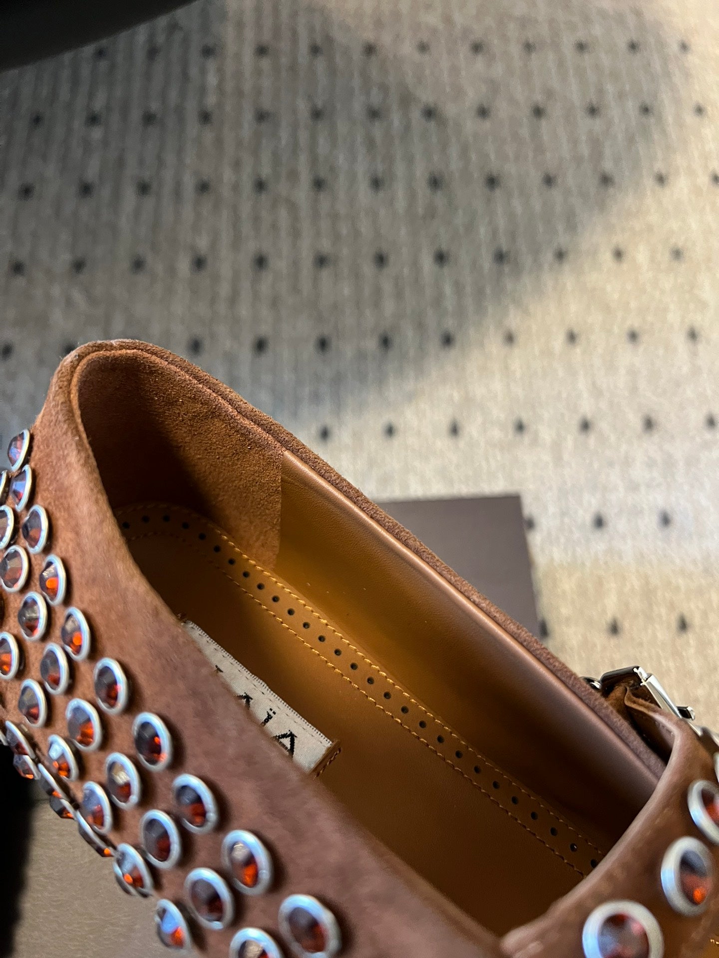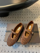 Alaia 25 Strass Ballet Flats Brown Suede Goatskin 303723