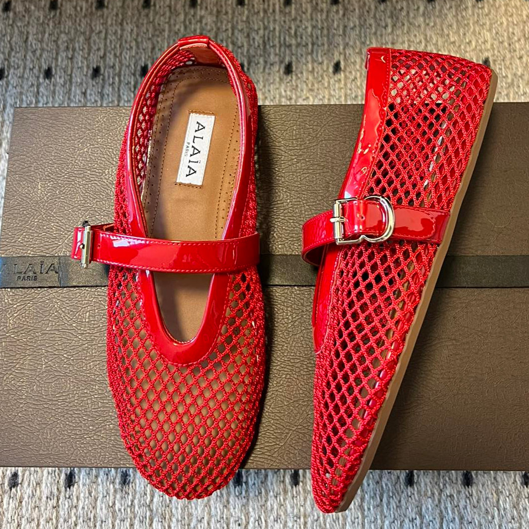 Alaia 25 Women's Ballet Flat Red Sheepskin 303702