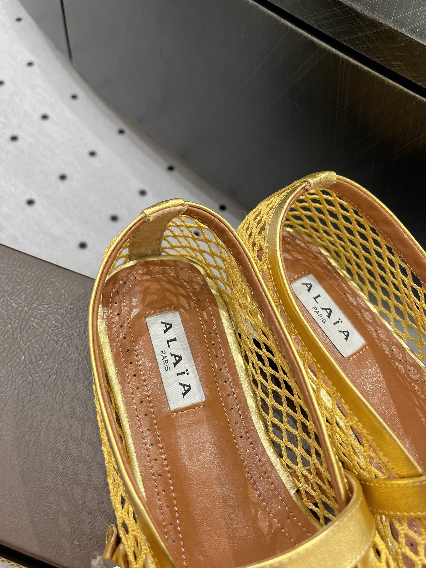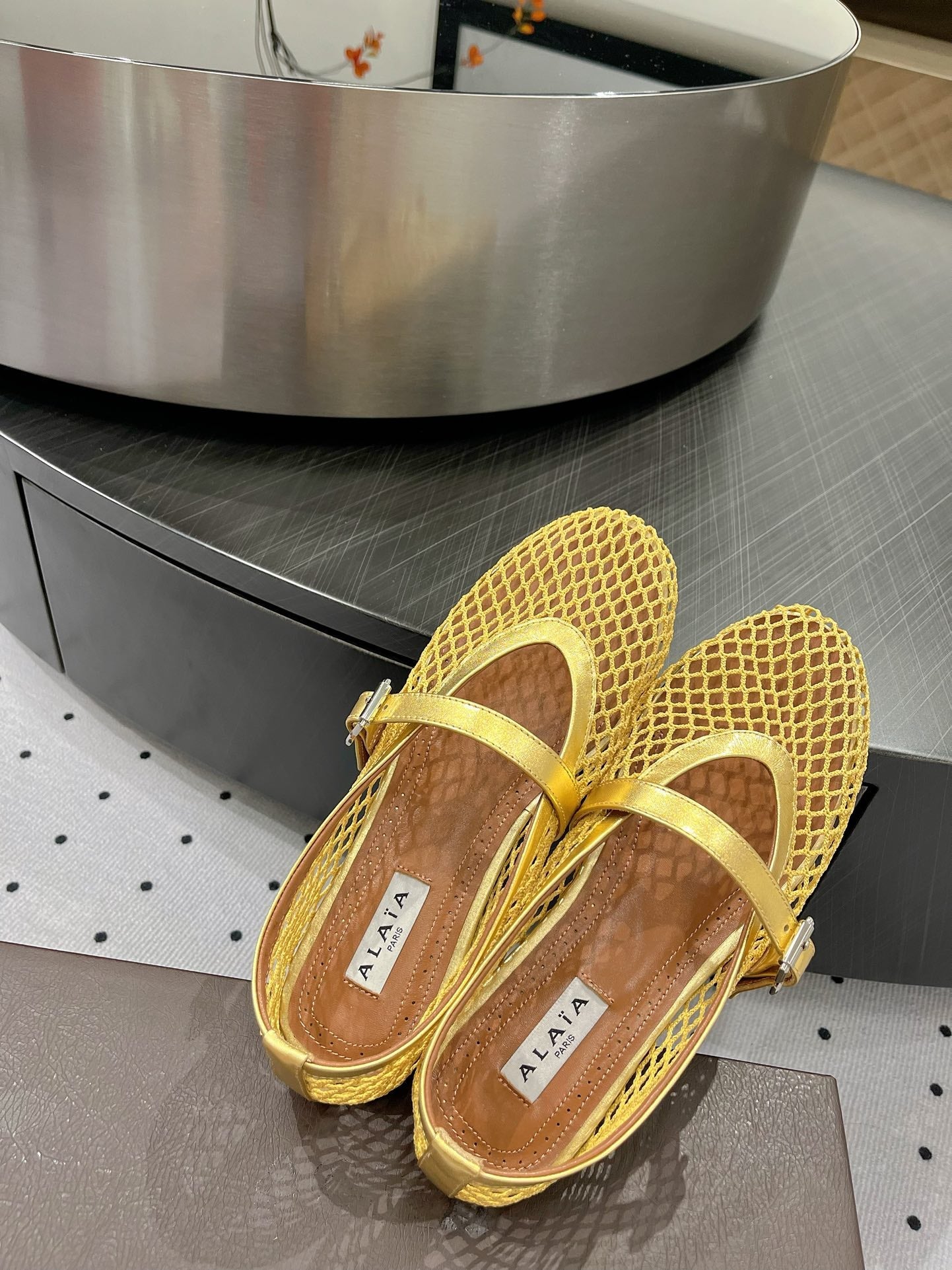 alaia ballet flat fishnet gold metalic lambskin