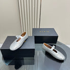 ALAIA CRYSTAL EMBELLISHED BALLET FLATS IN SILVER CALFSKIN