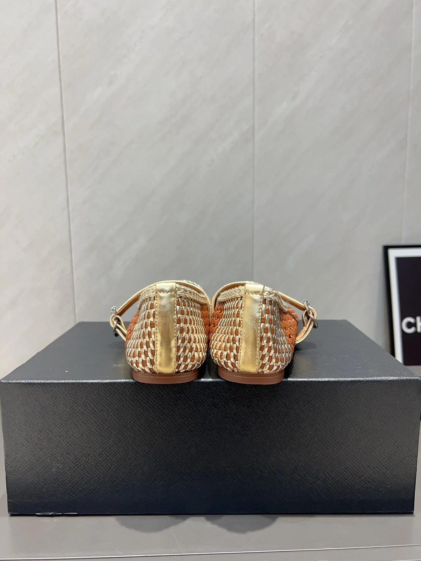 Alaia Mary Jane Flats Woven Pattern 25s In Brown Calfskin