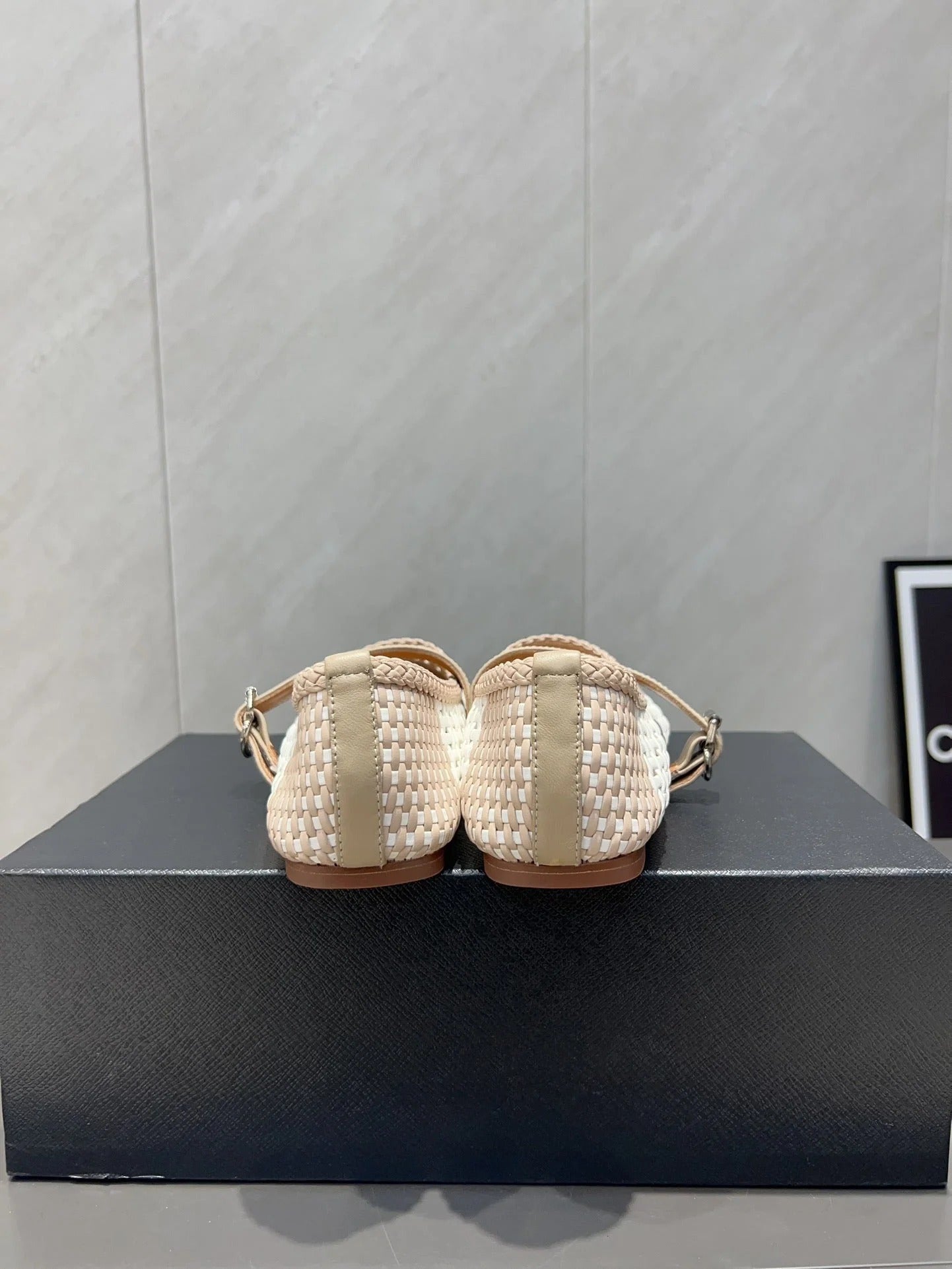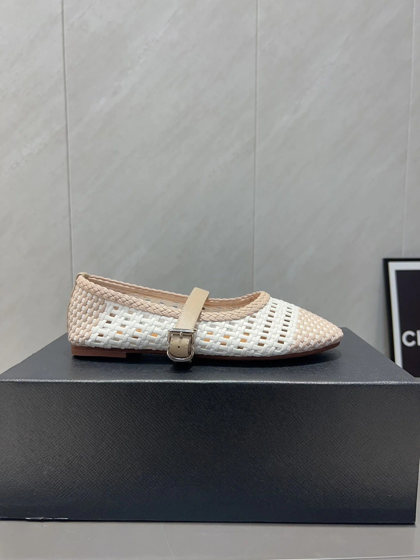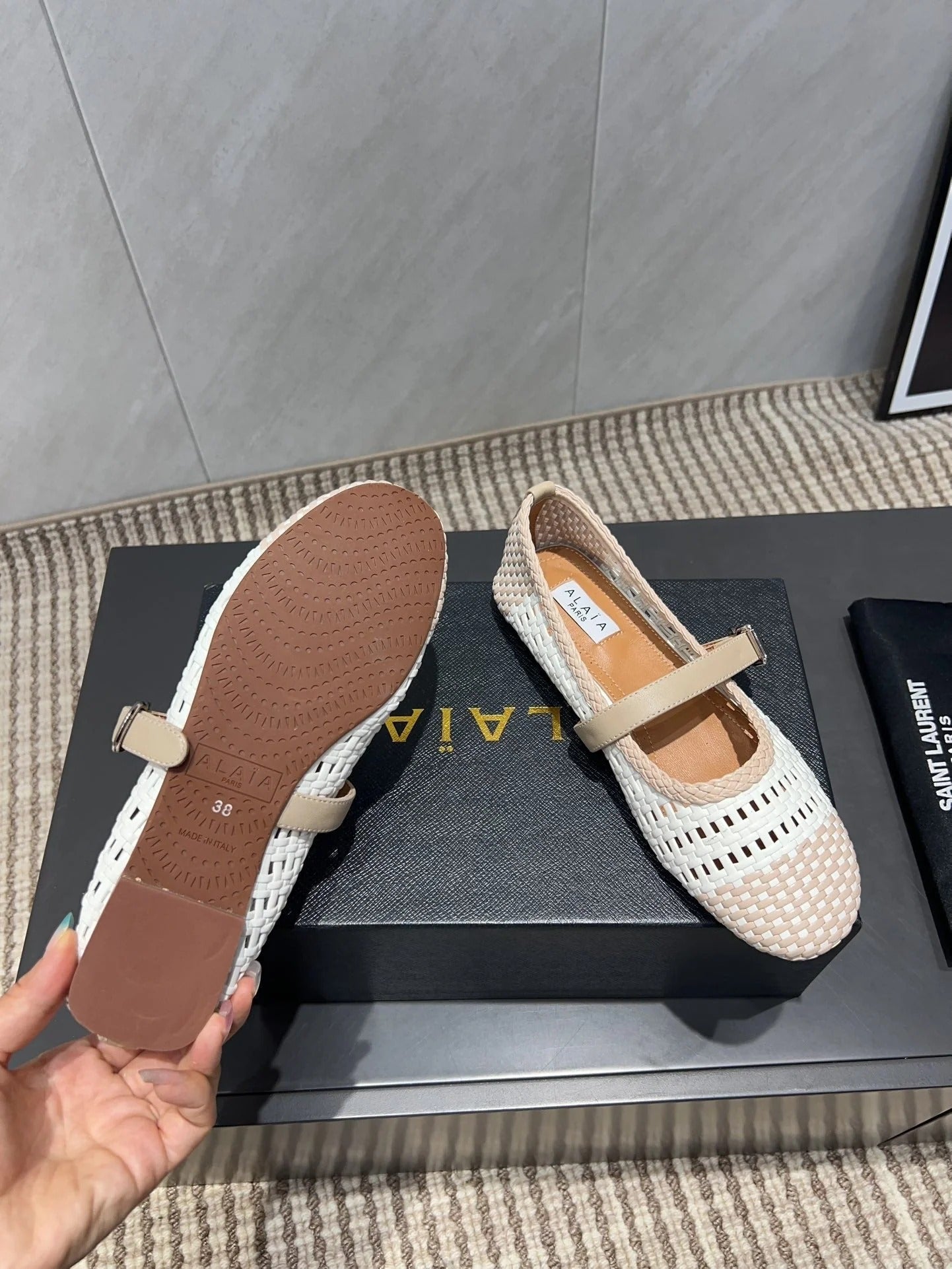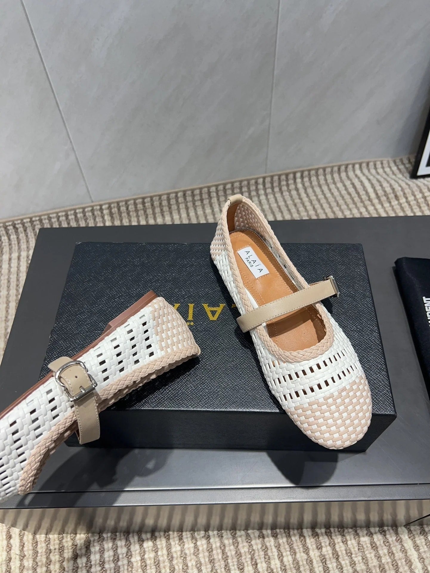 Alaia Mary Jane Flats Woven Pattern 25s In White Mix Light Beige Calfskin