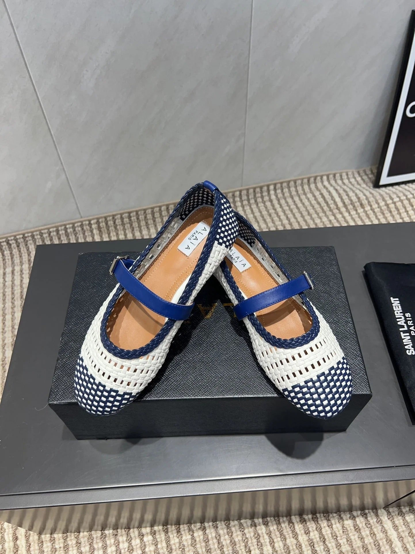 Alaia Mary Jane Flats Woven Pattern 25s In White Mix Navy Blue Calfskin