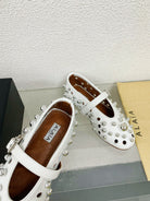 Alaila Ballet Flats In White Lambskin Beaded 897248