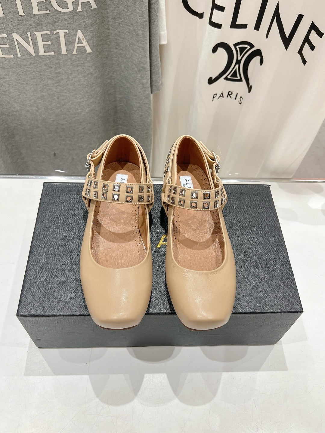 Alaila Biker Ballet Flats In Beige Cowhide 911448