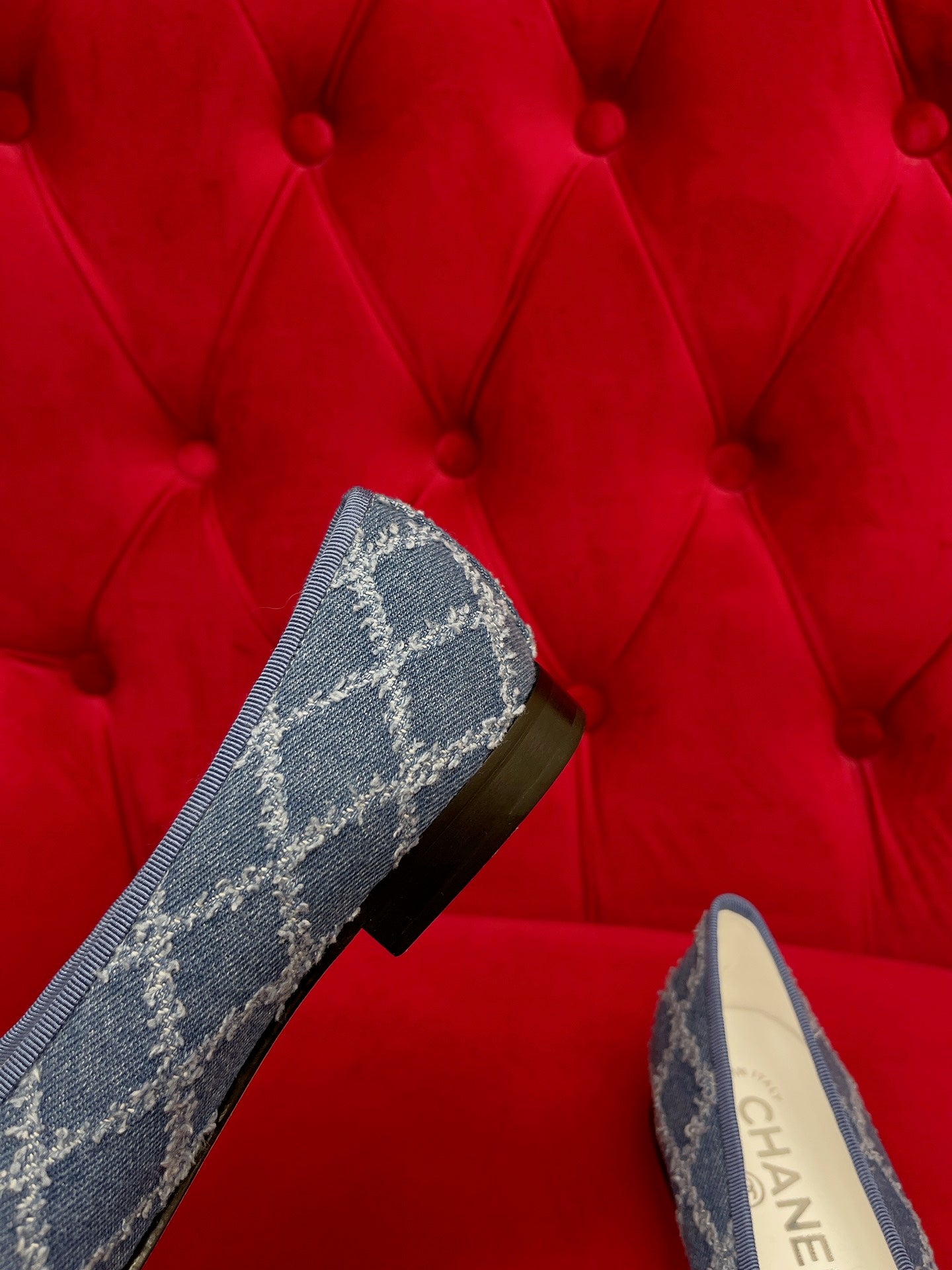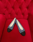 ballet flat blue black denim grosgrain