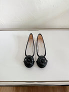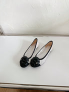 Ballet Flats White Lace Mesh Black Grosgrain Flower