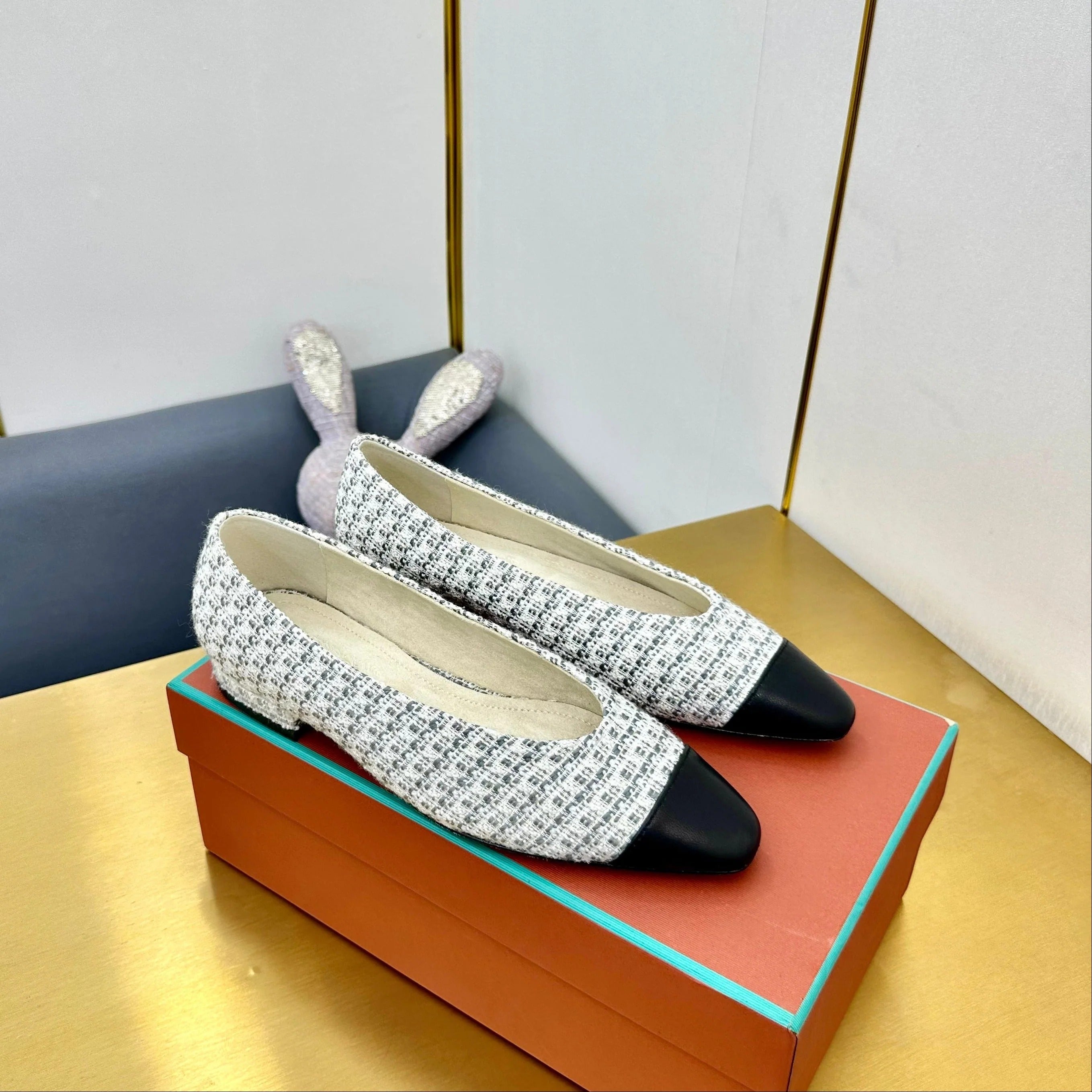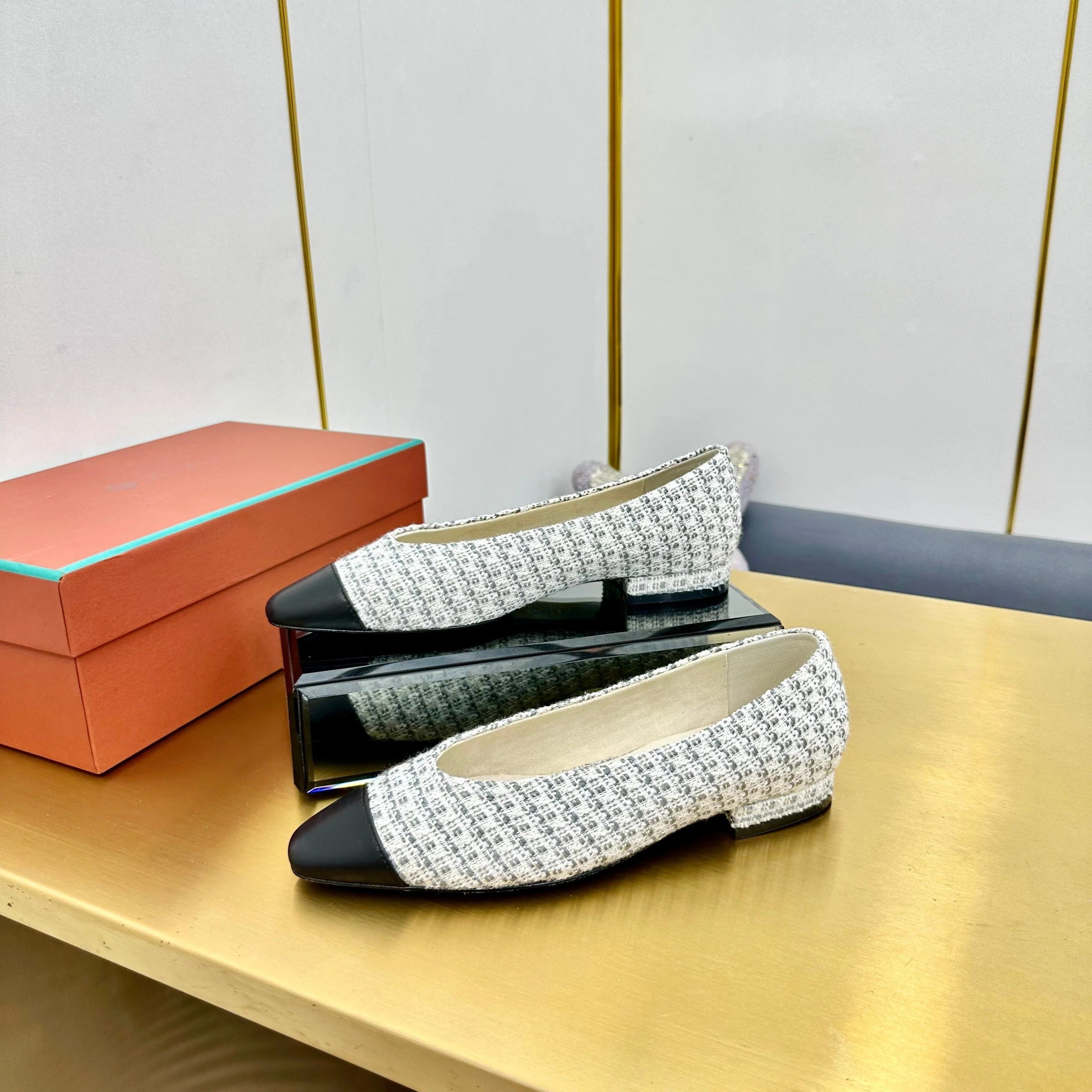 BALLET IN WHITE TWEED MIX BLACK LAMBSKIN