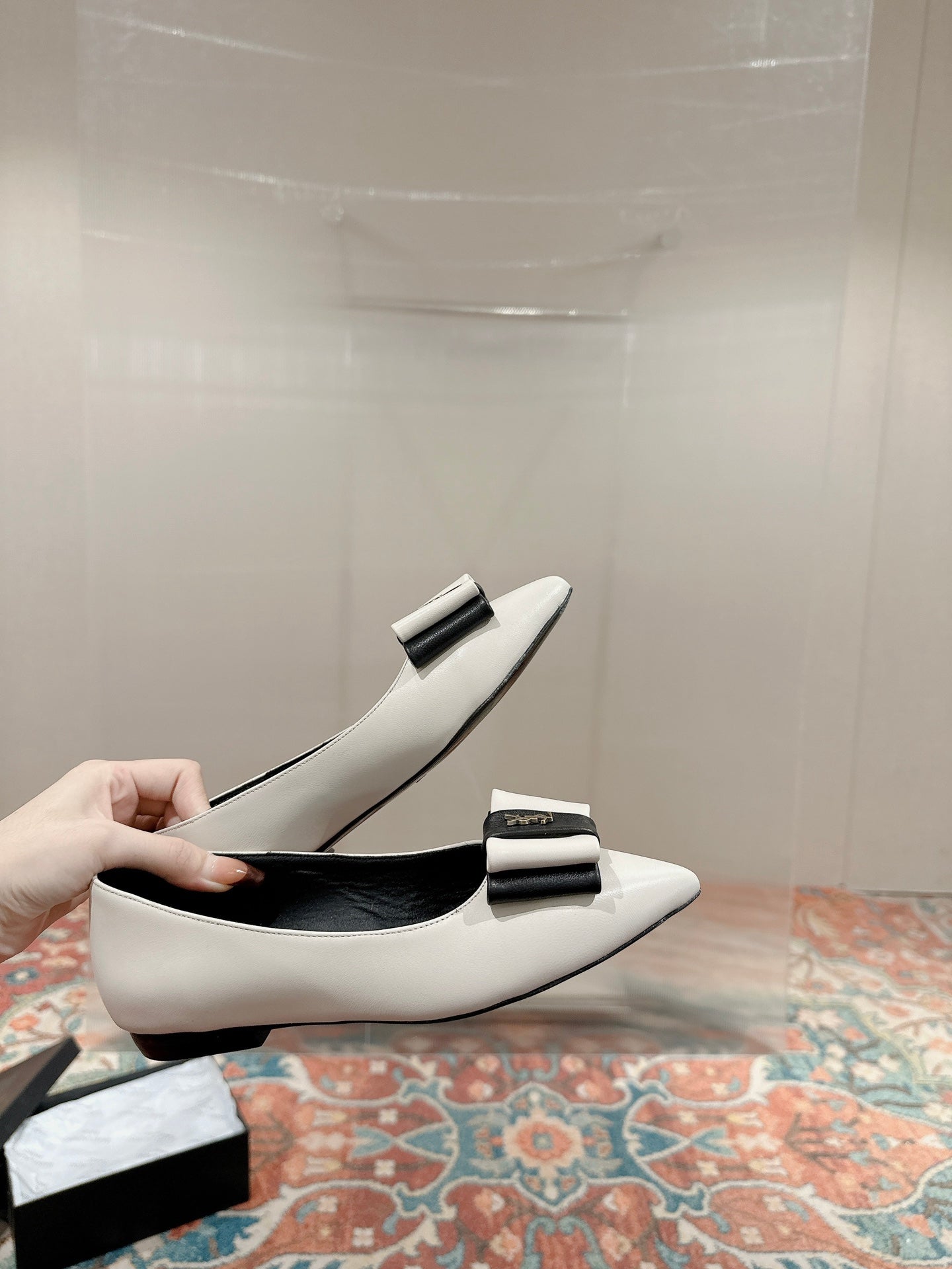 CASSANDRA BALLET FLAT IN WHITE MIX BLACK SMOOTH LAMBSKIN
