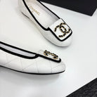 CC 25 Ballet Flat Large Logo White Quilted Calfskin