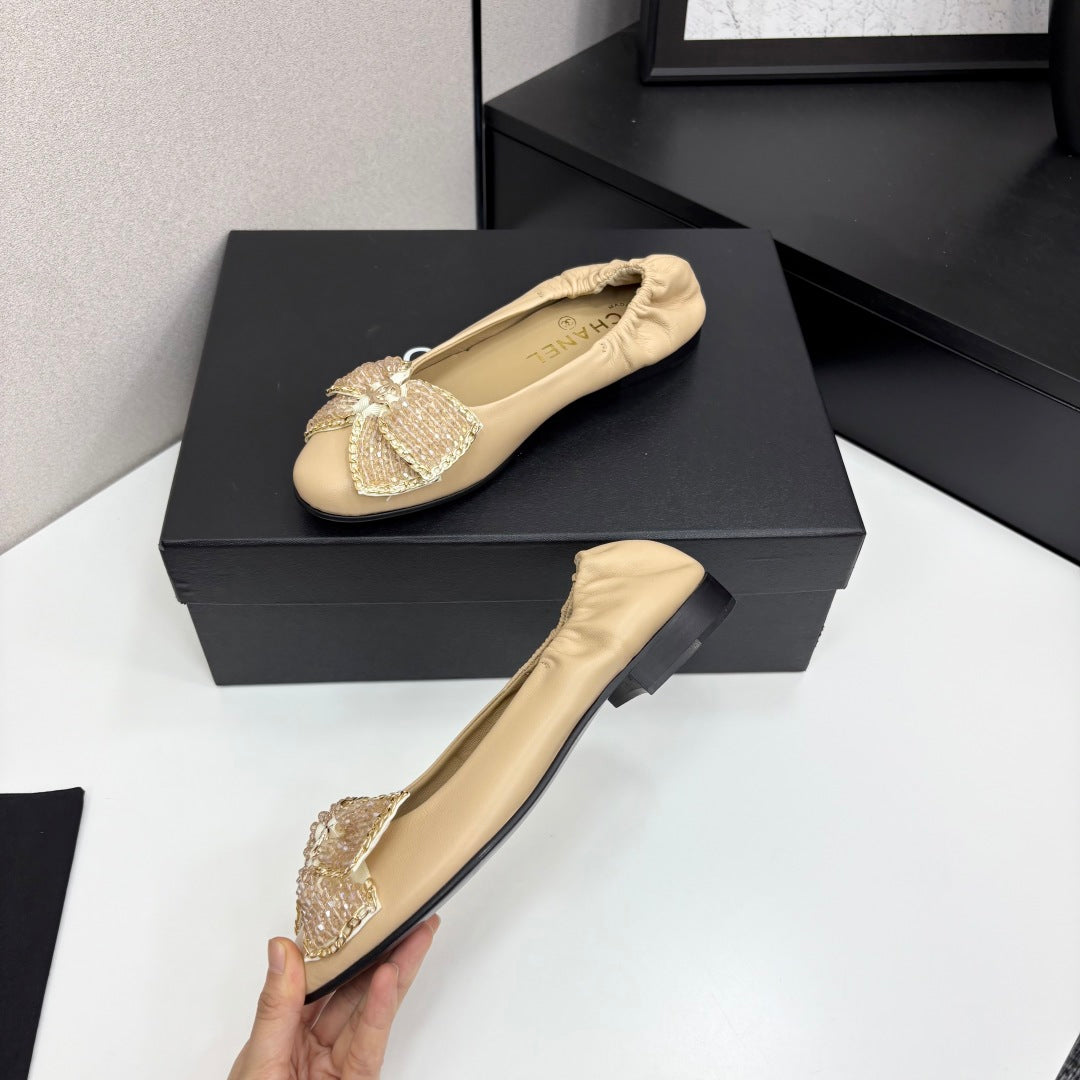 CC 25 Diamond Ballet Flats Beige Sheepskin 331787