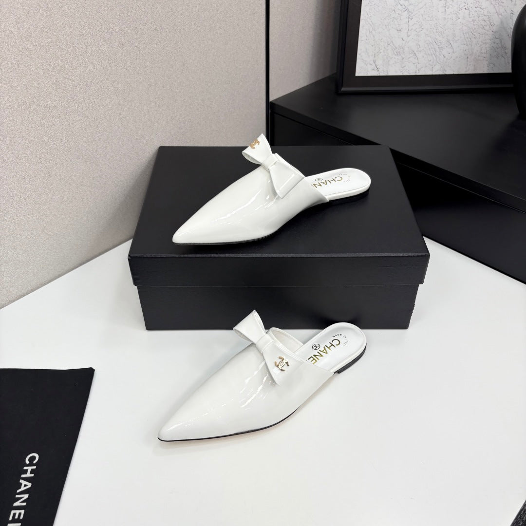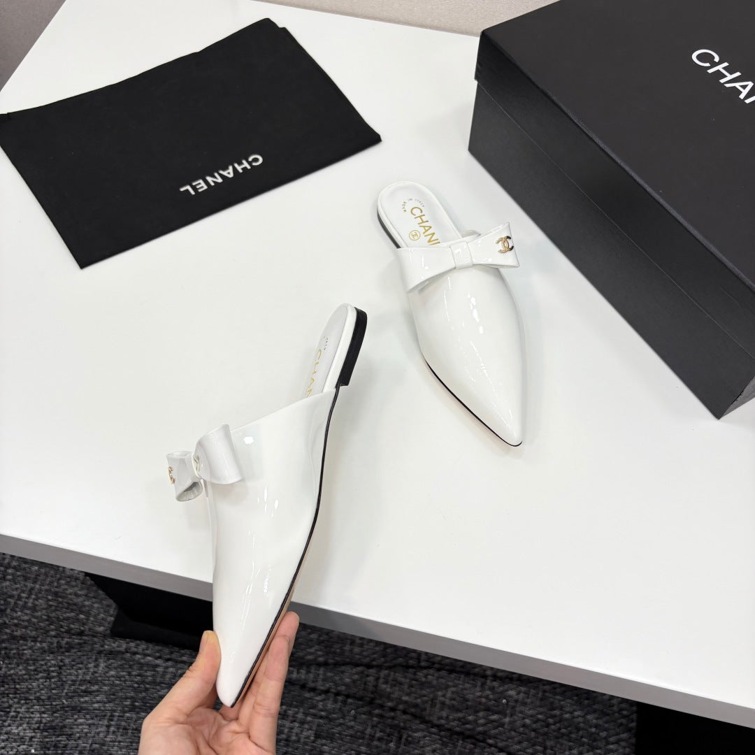 CC 25 Point-Toe Flat Mule White Patent Calfskin 352473