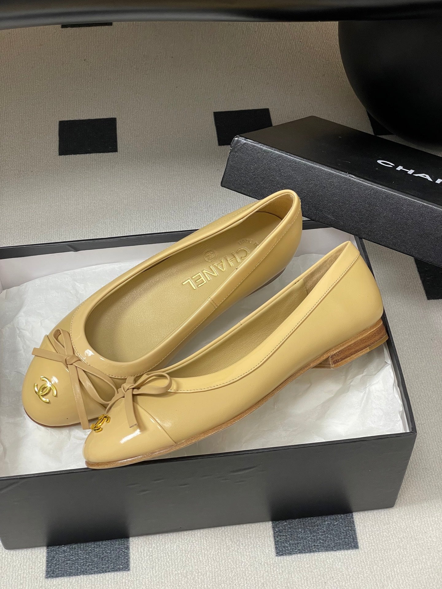 CC 25A Small Bow Ballet Flats Beige Sheepskin 393965