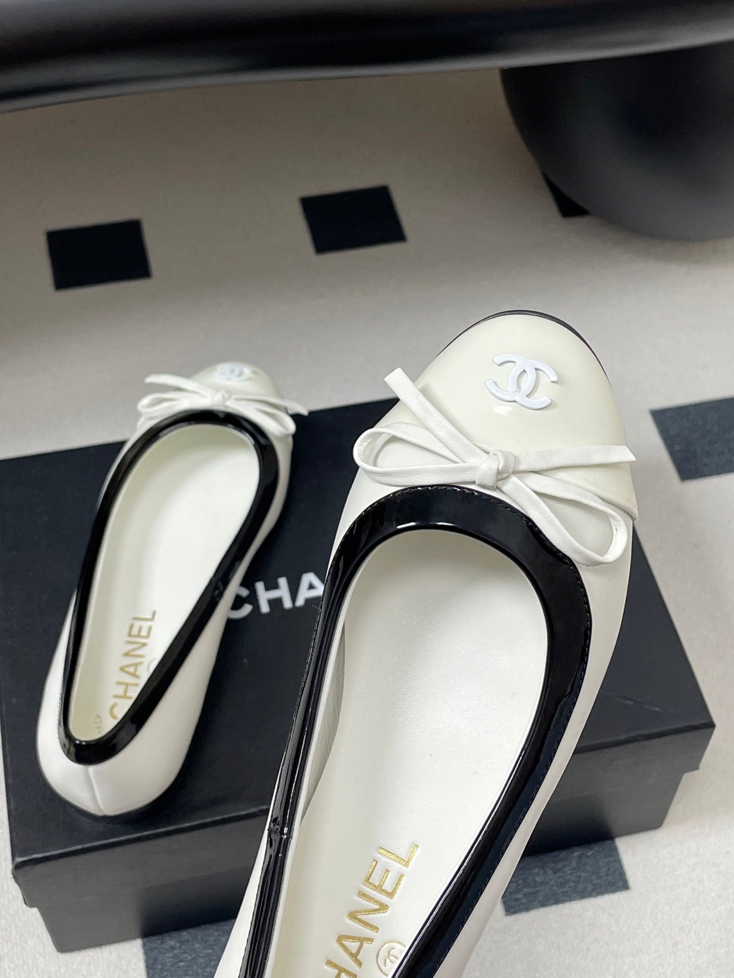 CC 25A Small Bow Ballet Flats White Mix Black Sheepskin 393966