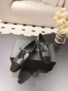 CC 25B Small Bow Buckle Ballet Flats 10mm Black Sheepskin Patent Leather 415747
