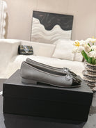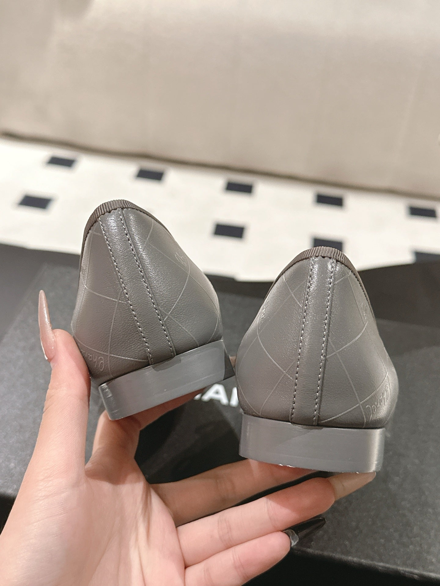 cc 25c ballet flat cross line pattern grey lambskin 237481