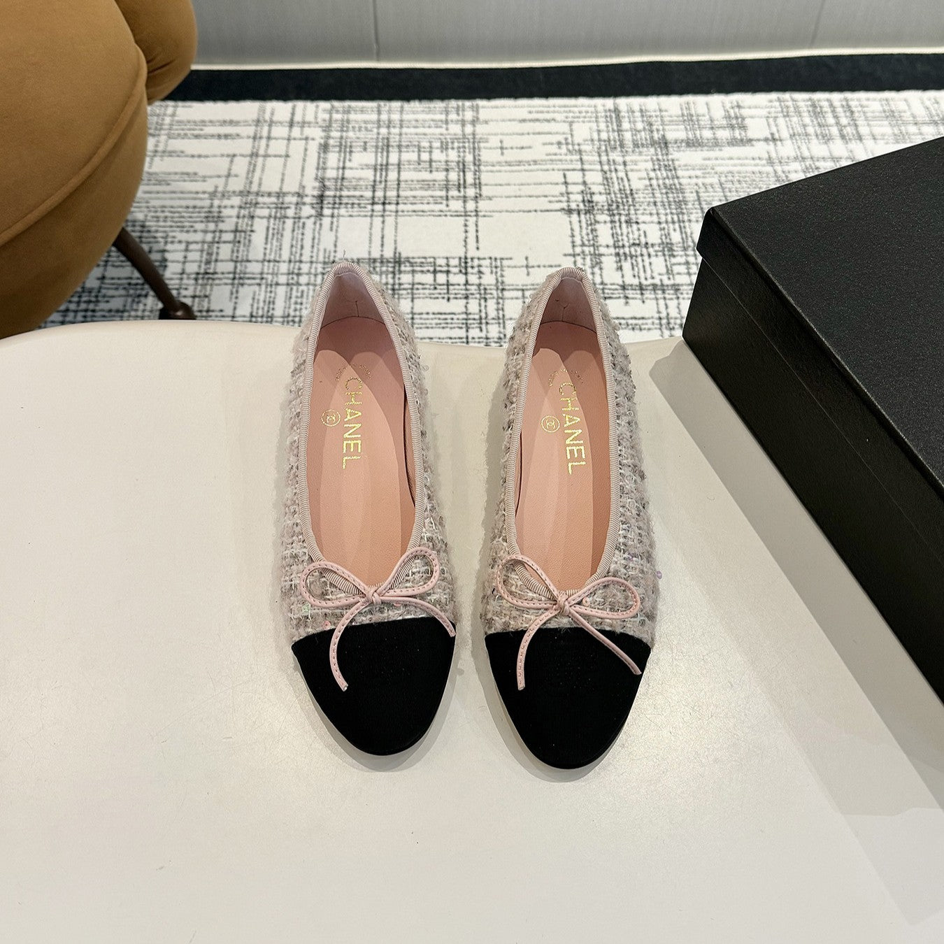 cc 25c ballet flat pink white tweed black grosgrain 233622