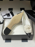 CC 25C Classic Camellia Pointed High Heels Flat 15mm White Suede 247609