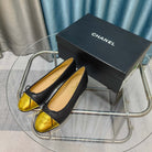 CC 25P Ballet Flat Black Calfskin Yellow Patent Calfskin