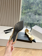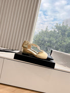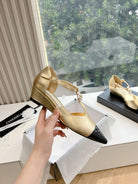 CC 25s Camellia T Strap Slingback 50mm Black Gold Calfskin&Sheepskin 413325