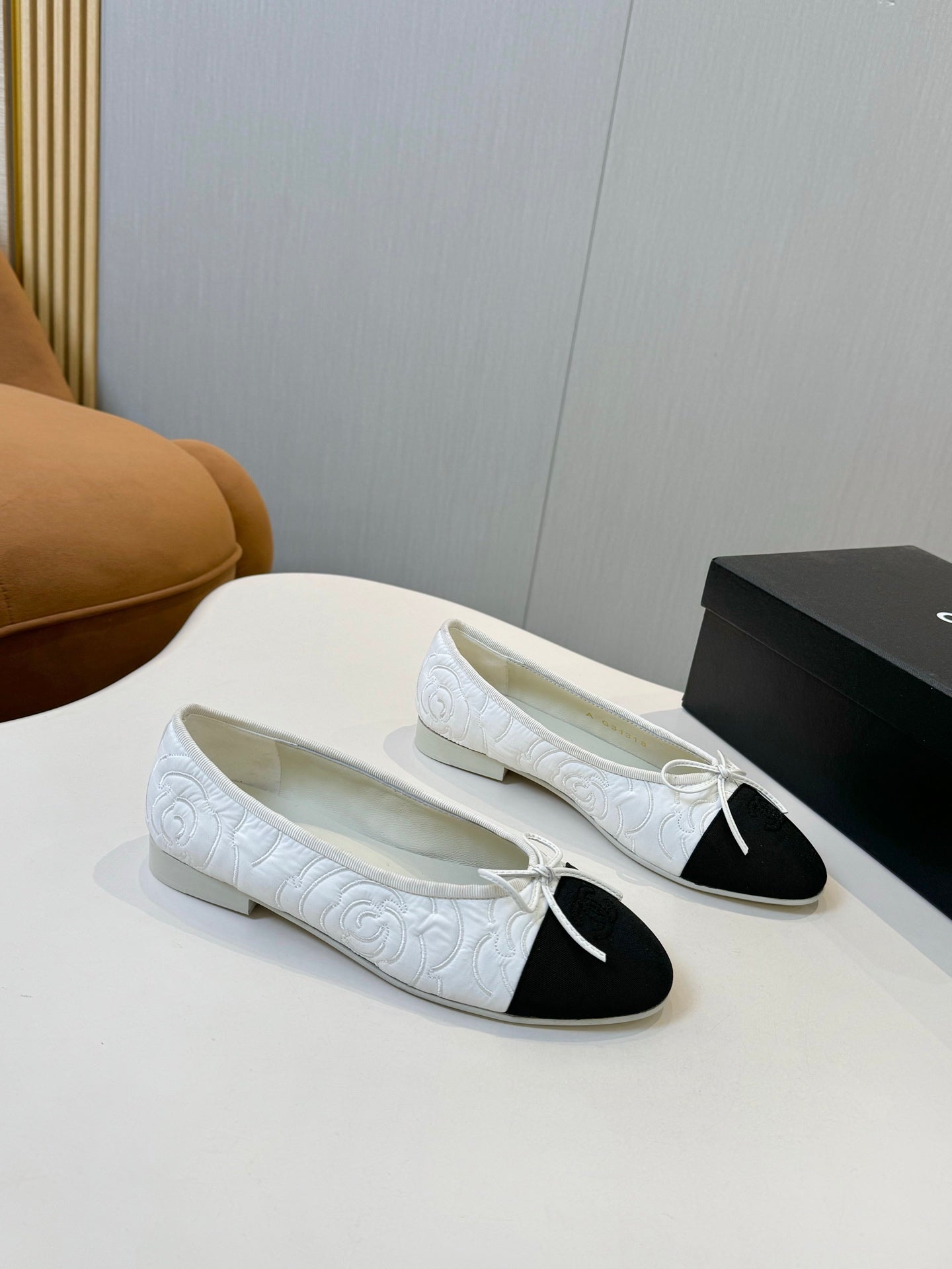 CC 25ss Métiers d’art Ballet Flats 10mm Black White Fabric Grosgrain 417039