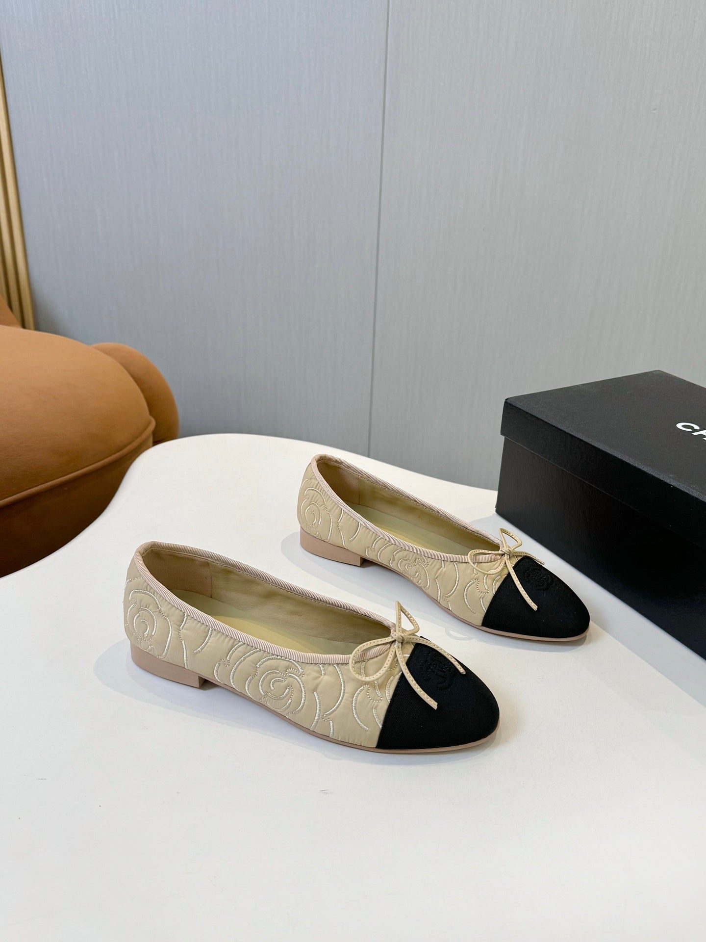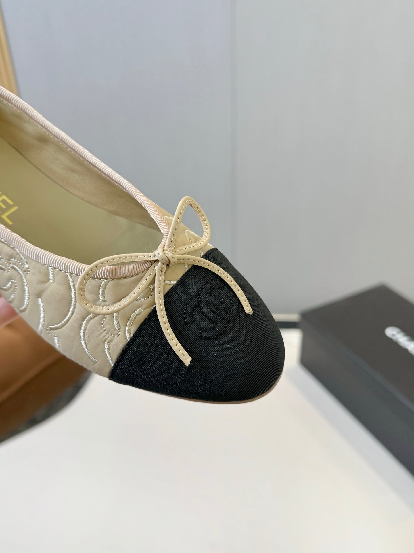 CC 25ss Métiers d’art Ballet Flats 10mm Black Beige Fabric Grosgrain 417040