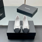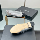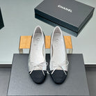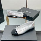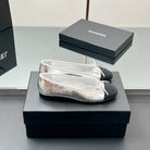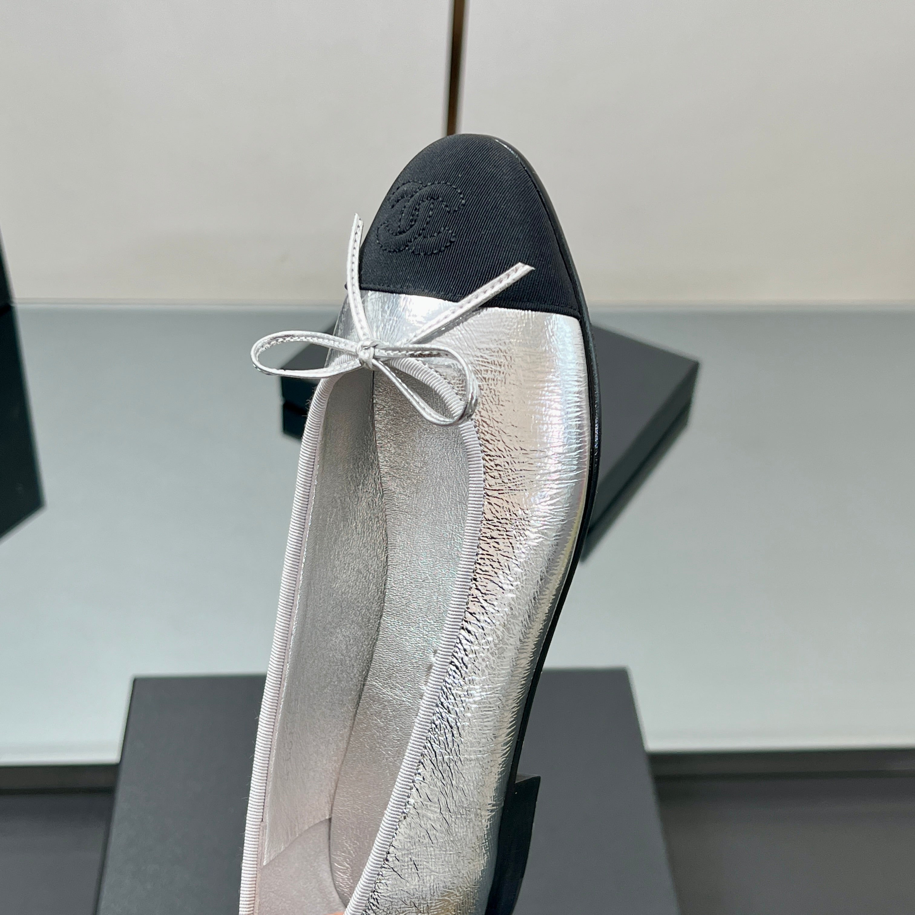 CC Ballet Flats 20mm Silver Metallic Sheepskin Black Grosgrain 266677