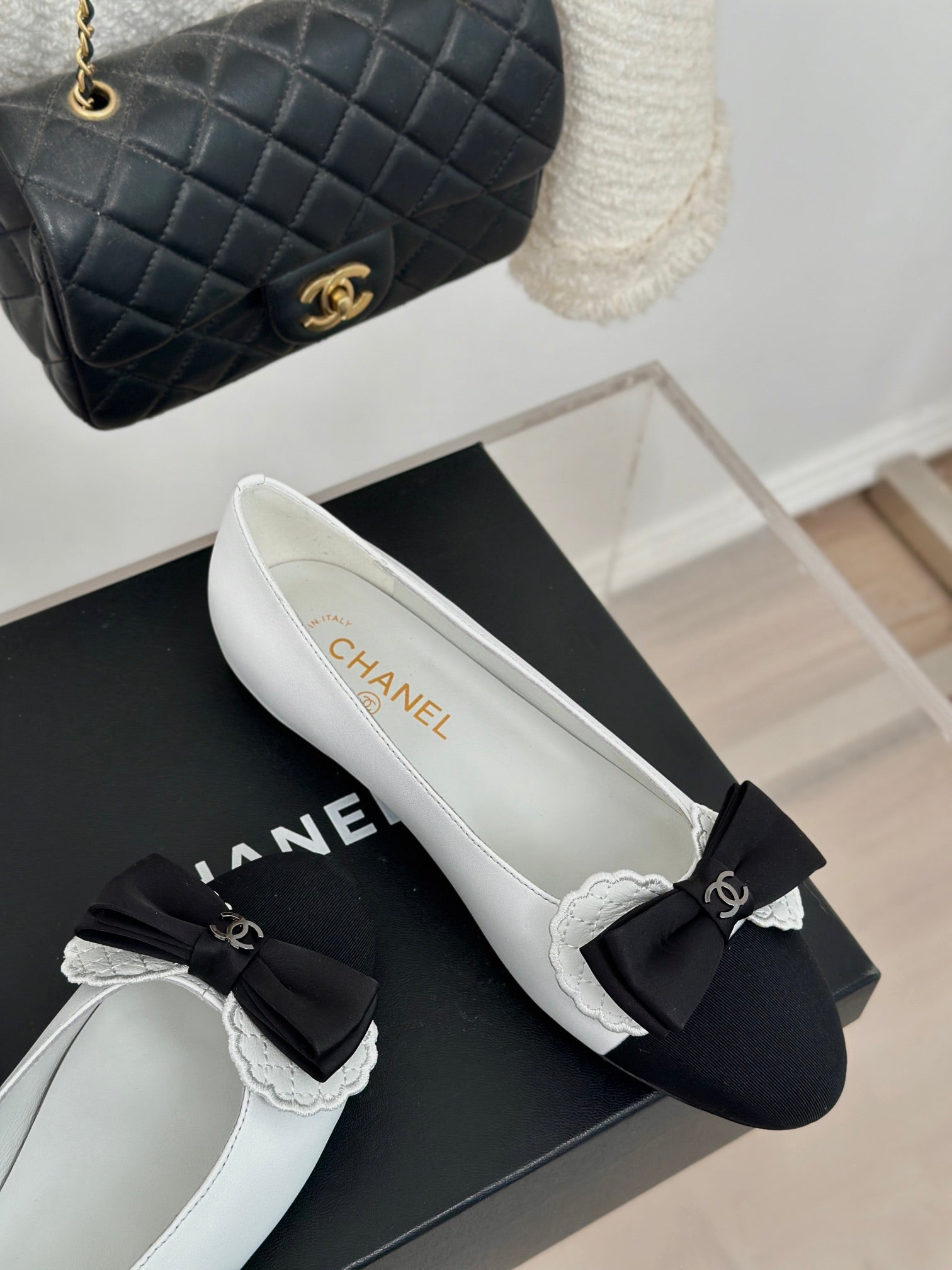 CC Ballet Flats White With Bow Lambskin