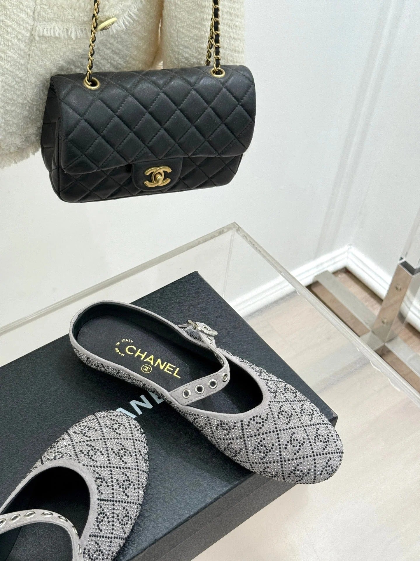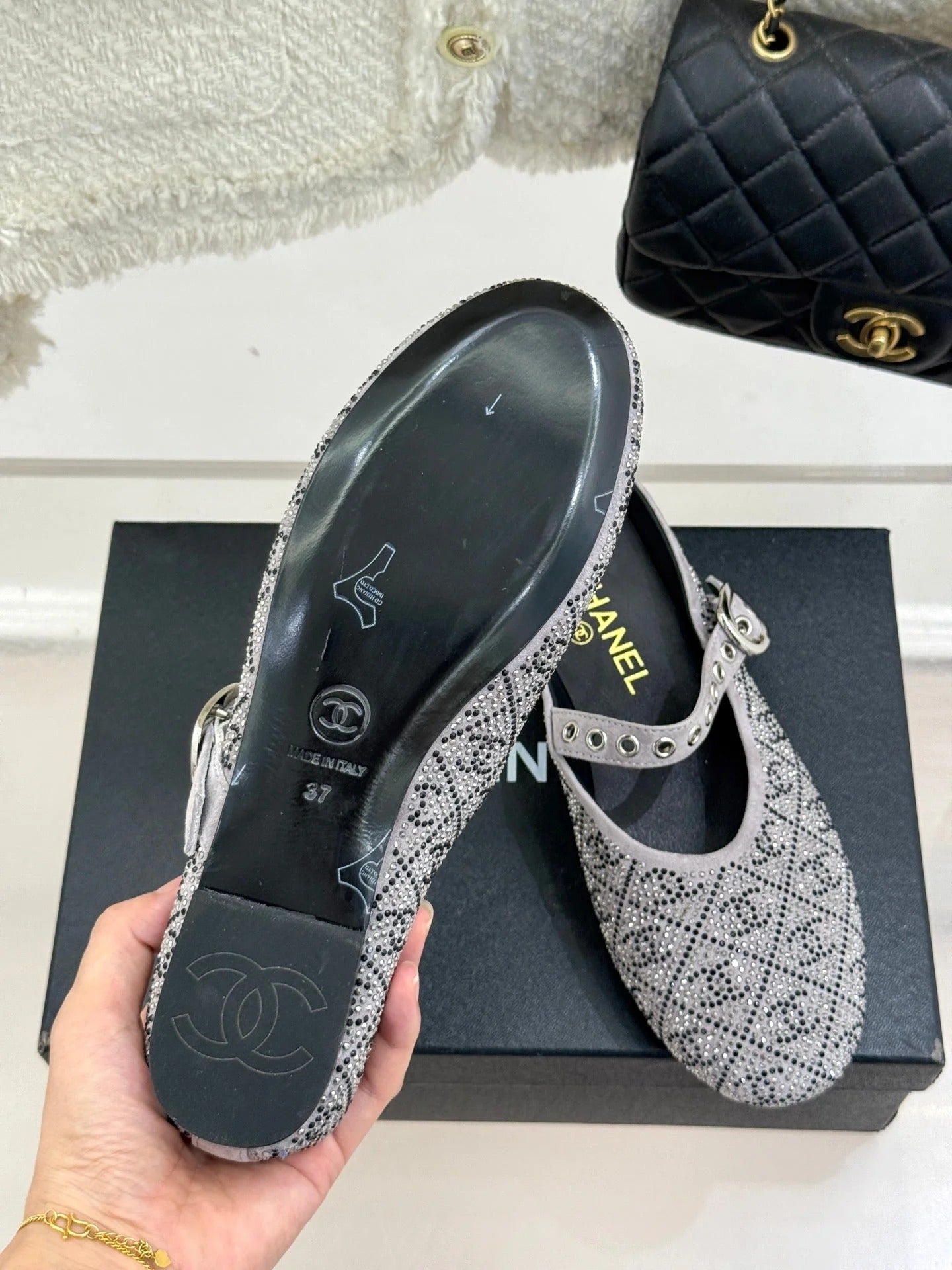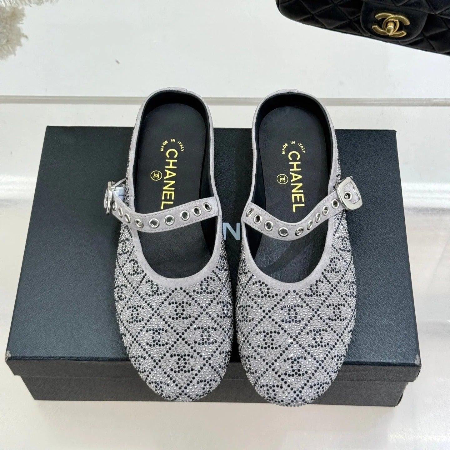 CC Flat Mules 25ss In Grey Embellished With Rhinestones