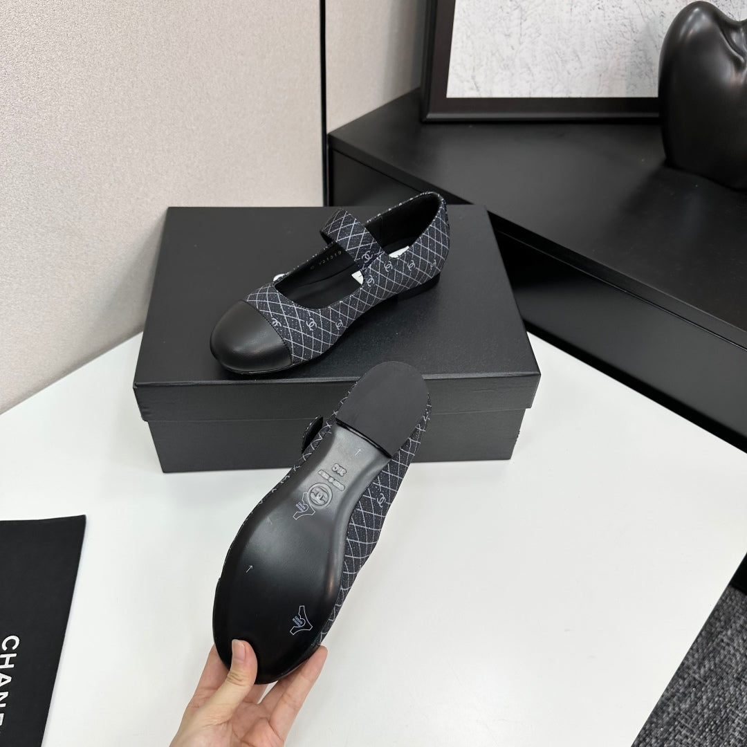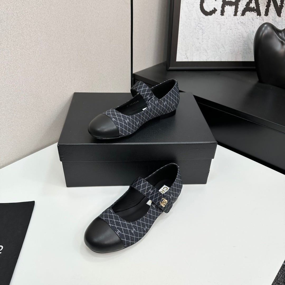 CC25 Mary Janes Black Fabric And Cowhide 352510