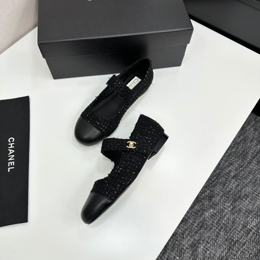 CC25 Mary Janes Black Tweed And Cowhide 352507