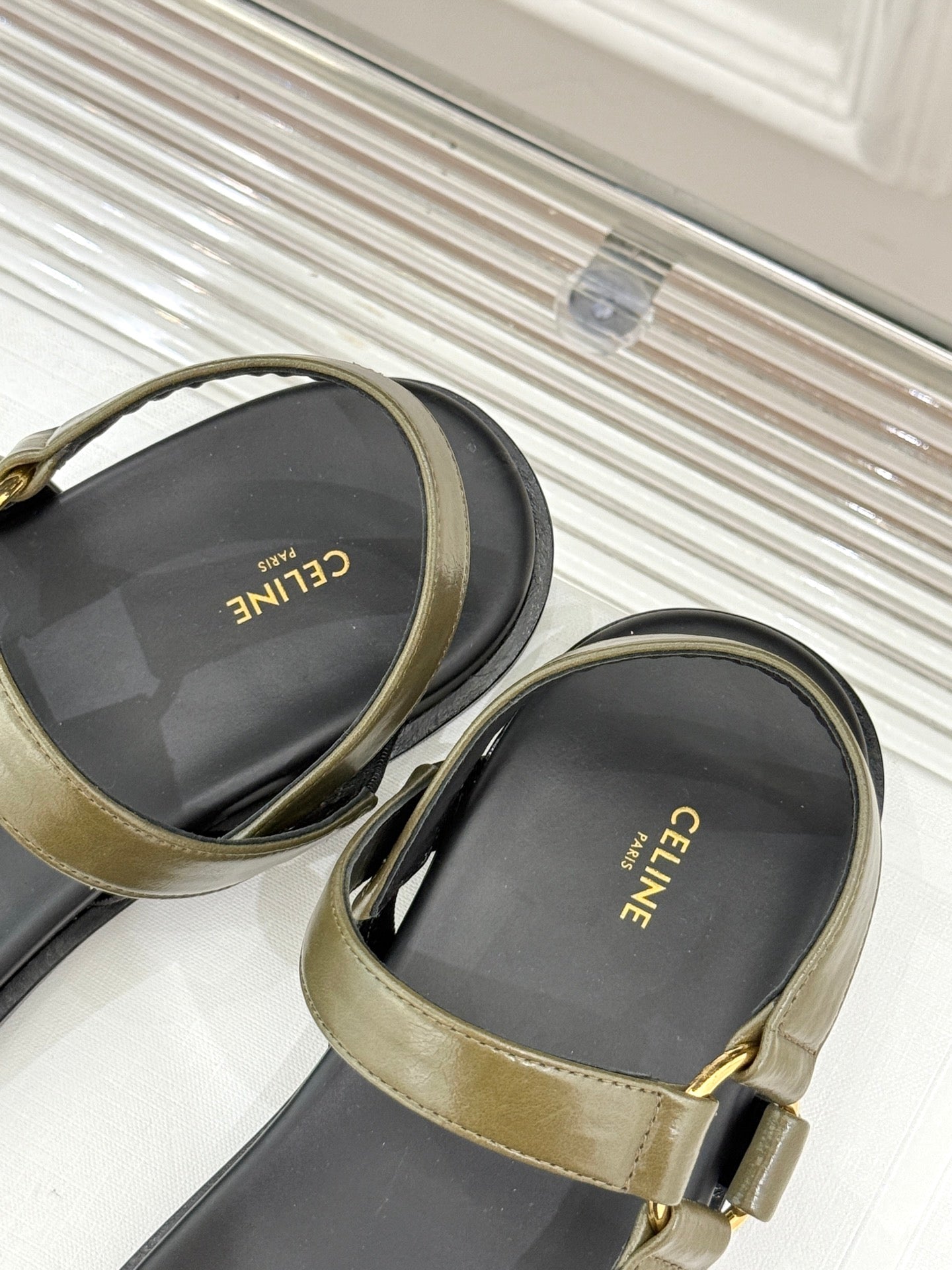 CELINE Maud Sandal Moss Green Leather 285902