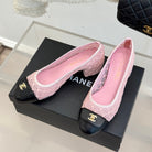 Chanel 25 Ballet Flat 50mm Pink Black Woven Lambskin 473052