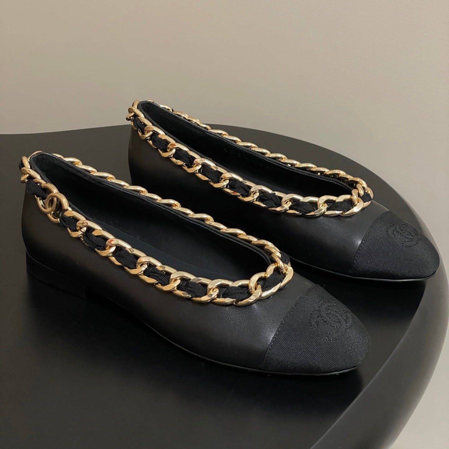 Chanel 25A Ballet Flats Big Chain Double C Black Sheepskin 393820