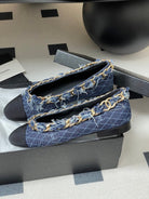 Chanel 25A Ballet Flats Big Chain Double C Dark Blue Denim Sheepskin 393816