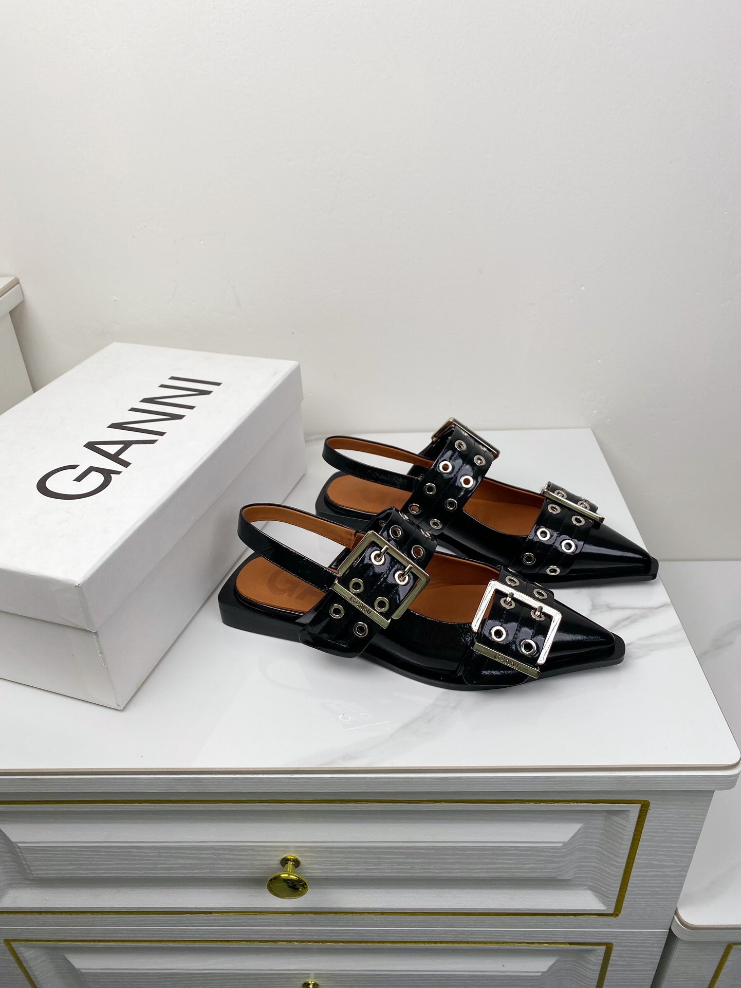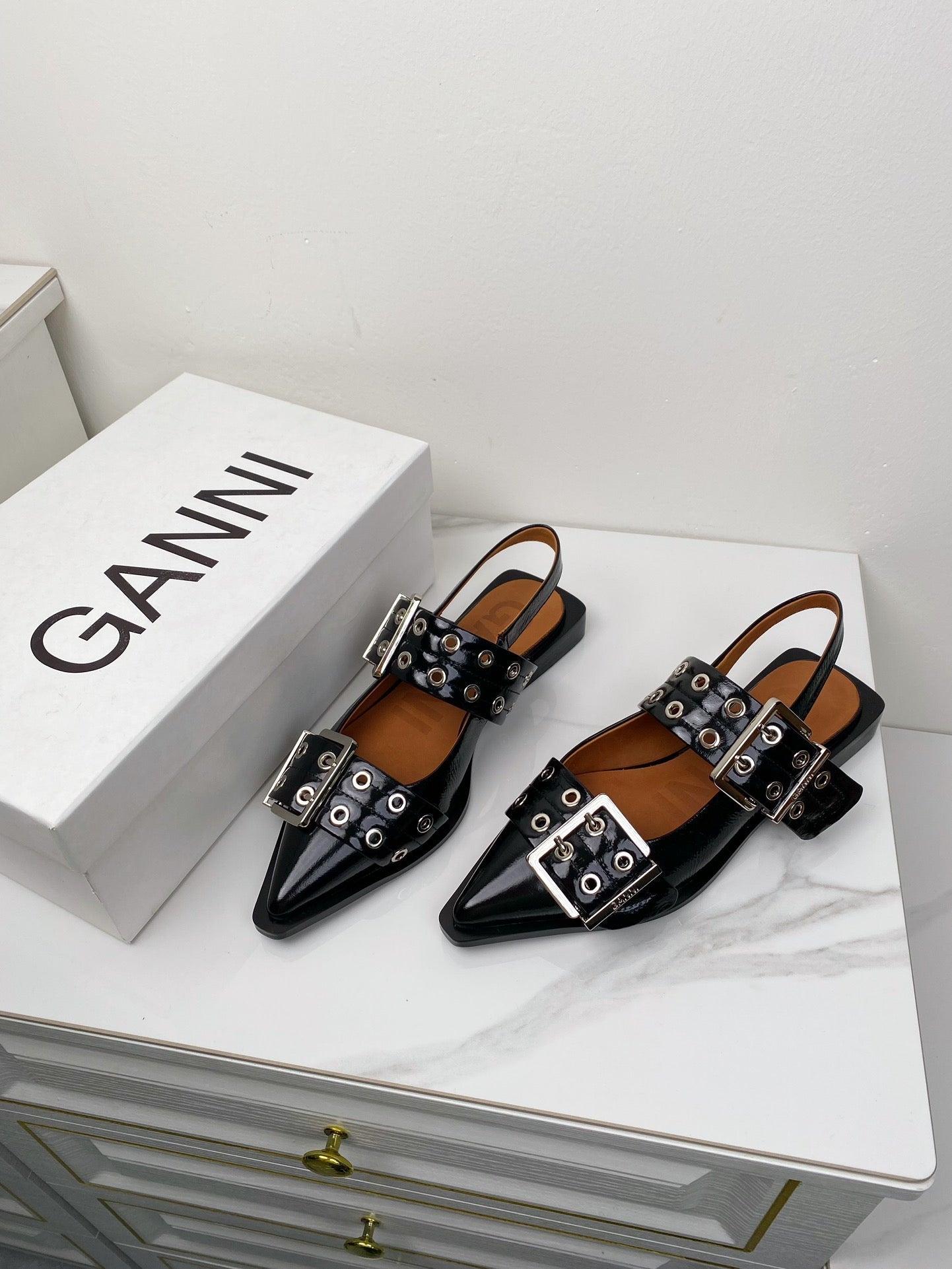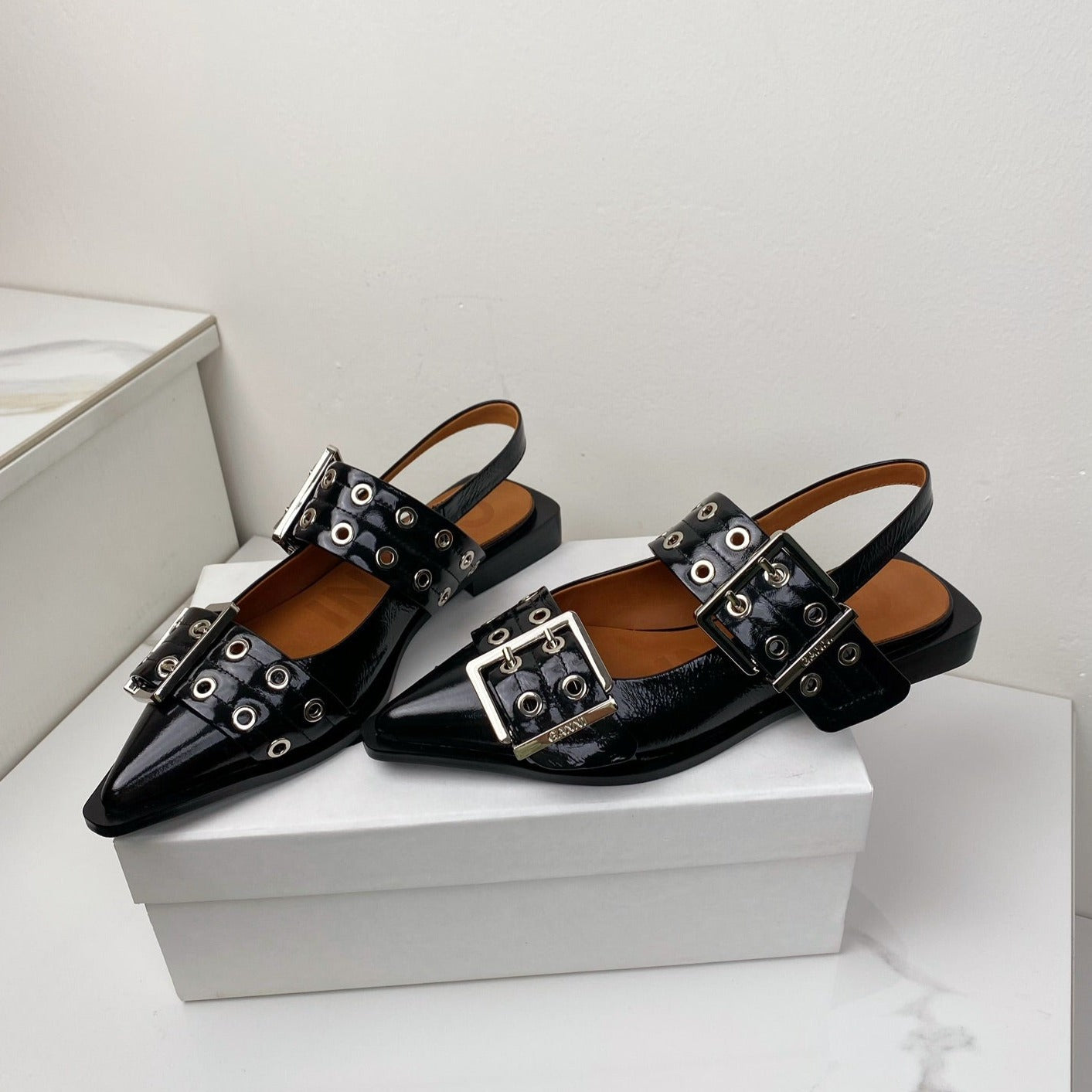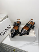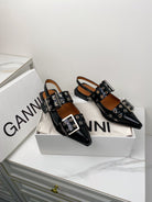 ganni black feminine buckle slingback flat